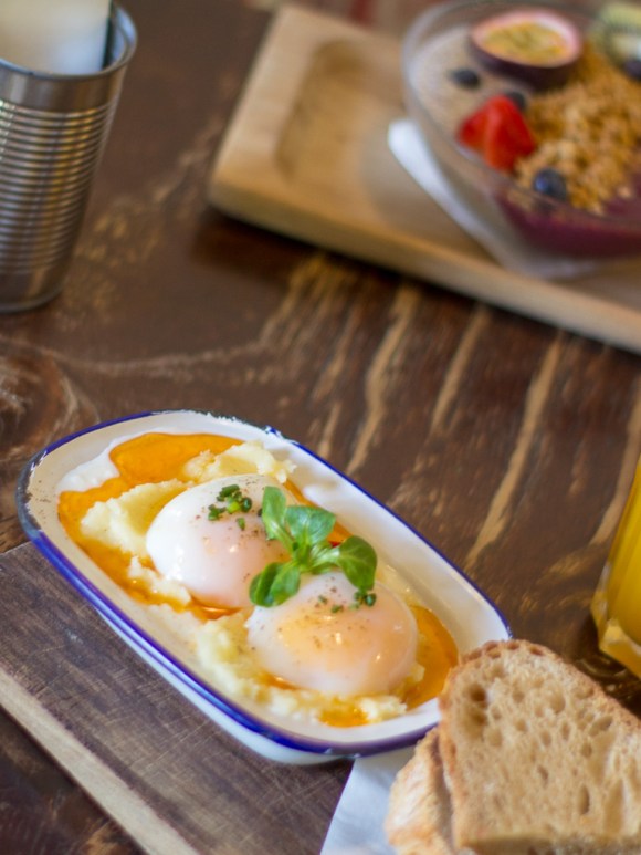 Ohh Caravelle, that’s a new favourite of mine when it comes to breakfast in Barcelona. The menu is like the place, trendy, (Moroccan style eggs with lots of spices, corn fritters or coconut French Toast with mascarpone and berries just to mentions a few dishes). The interior has an industrial feeling and there’s just an overall trendy atmosphere to the place.